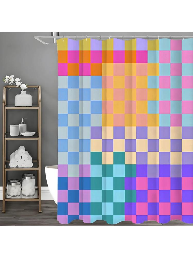 Colorful Gradient Geometric Square Shower Curtain, Bathroom Decorative Shower Curtain, Waterproof Shower Curtain with Hooks