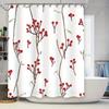 Cherry Print Shower CurtainRustic Red Floral Pattern Decor for Bathrooms Pink Background with Green Stems Waterproof Fabric Hang
