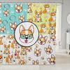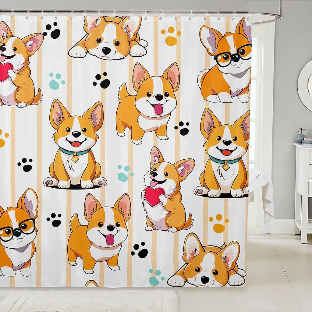 Puppy Shower Curtain Set Cartoon Corgi Shower Curtain for Teens Boys,Lovely Pup Dog Bath Curtain Doggy Cute Pet Toilet Lovely