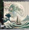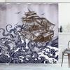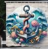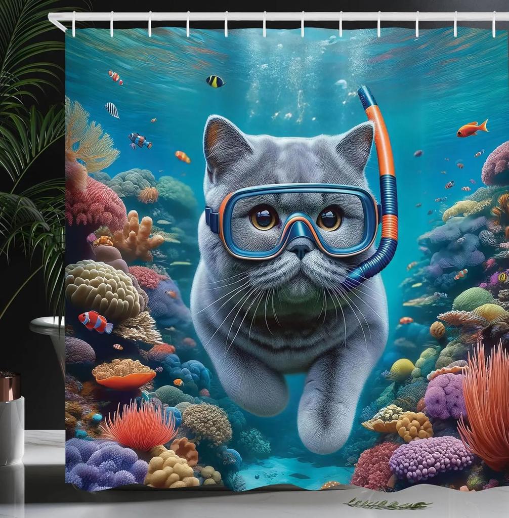 Nautical Shower Curtain, Funny Surreal Image of a Grey Cat Diving in The Deep Ocean Colorful Reef, Cloth Fabric Bathroom Decor