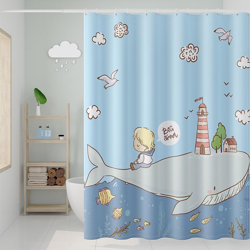VIKAMA Children's Cartoon-Themed Shower Curtain Wet-Dry Separation Mould-Resistant Bathroom Divider Home Decor