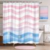 Wave Shower Curtain Teal Aqua Watercolor Stripes Polyester Bath Curtain with Hooks for Modern Minimalist Decor