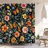 Vintage Boho Shower Curtain Black and Gold Floral Bathroom Aesthetic Decorative, Funny Rustic Bee Daisy Flowers Witchy Eclecti