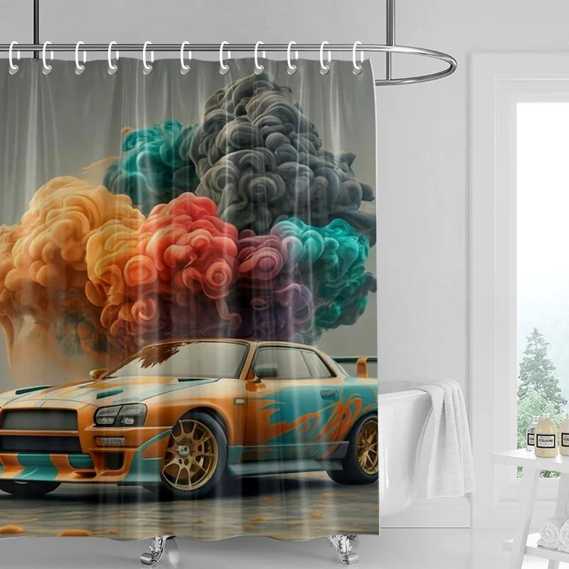 Car Cartoon Shower Curtain Waterproof Bathroom Curtain Bathroom Partition Curtain Universal Home Decor Ins Style