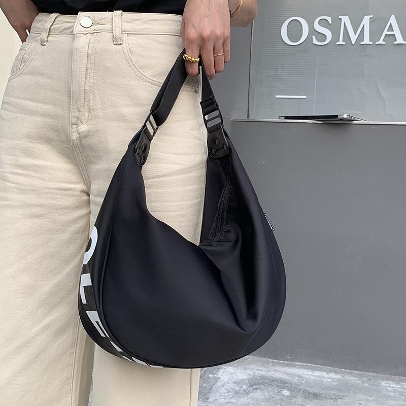 casual trendy messenger bag simple letters large capacity wide shoulder strap shoulder bag Oxford cloth crescent bag women's bag