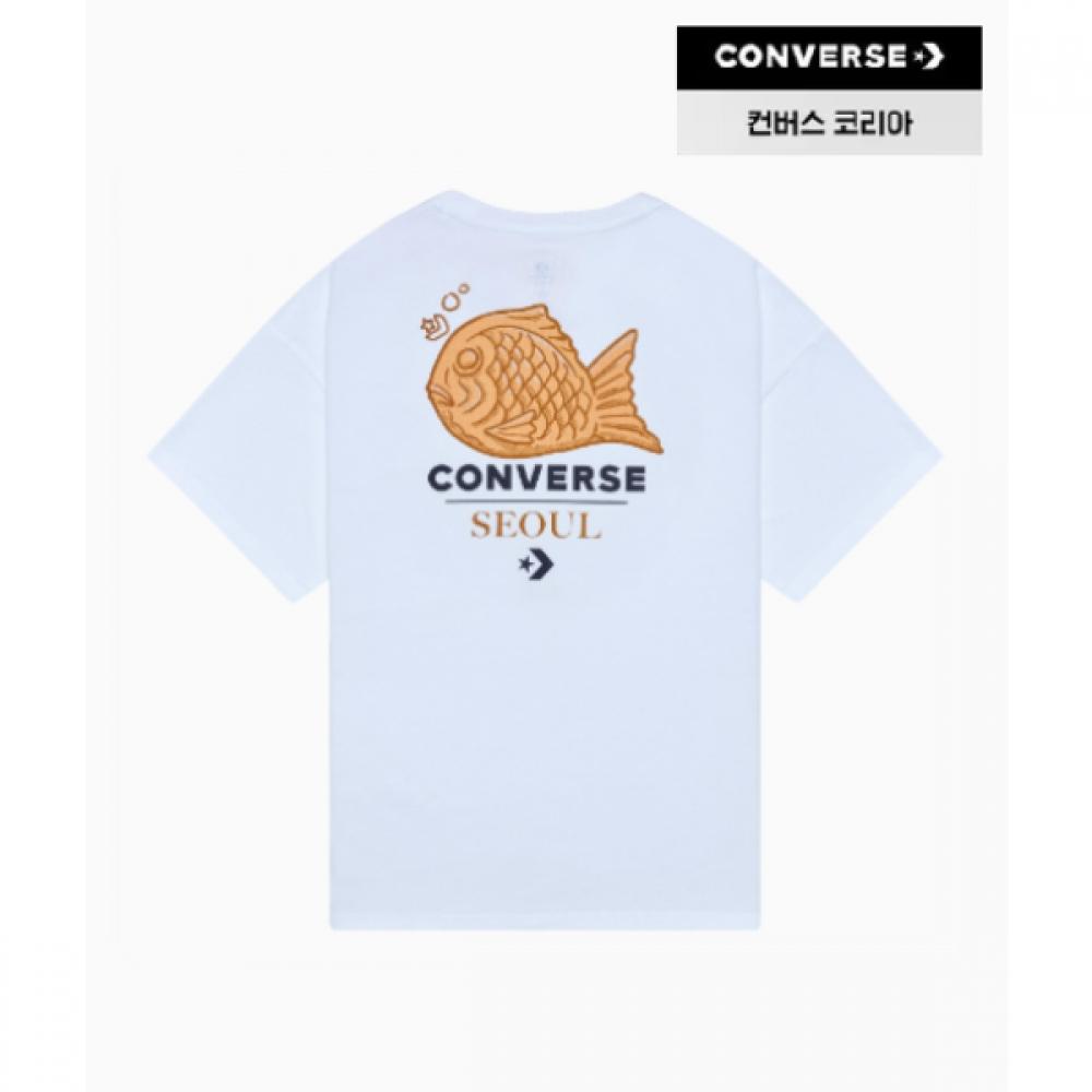 Converse Seoul CiTy Bungeo Bread Back PrinT ShorT Sleeve T shirT Oversized whiTe