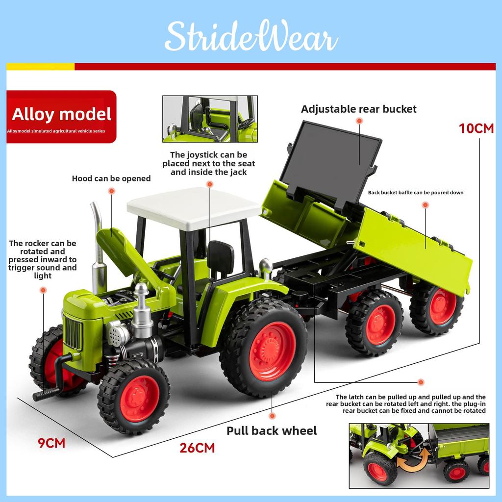 This die-cast tractor toy features a sturdy alloy construction with realistic vintage design, showcasing detailed craftsmanship.it resists wear and maintains its appearance over time. Its inertial control allows for smooth, self-propelled movement on various surfaces. Ideal for childrens imaginative play or collection, it supports indoor and outdoor use. Wipe clean with a damp cloth to preserve its finish.