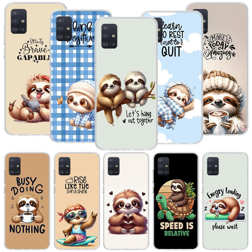 Animal Cute Cartoon Sloth Coffee Phone Case For Samsung Galaxy A52 A32 A22 A12 A02S A50S A30S A51 A31 AA71 Note 20 Ultra 10 S10