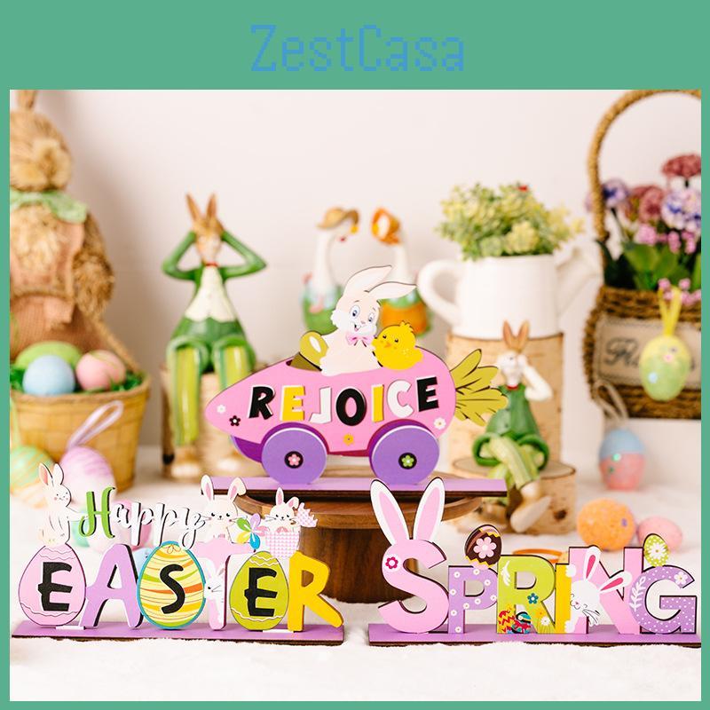 Unique Design: The Charming Easter Bunny Figurine features delightful purple wooden letter accents that add a whimsical touch to your Easter decor.