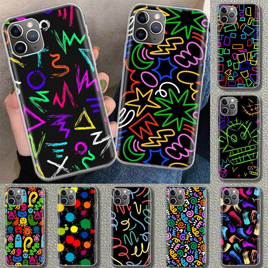 Simple Pattern Graffiti Phone Case Cover for iPhone 11 12 13 Mini 14 15 Plus 16 Pro Max 17 Air 7 8 + SE Art Customized Fundas 11