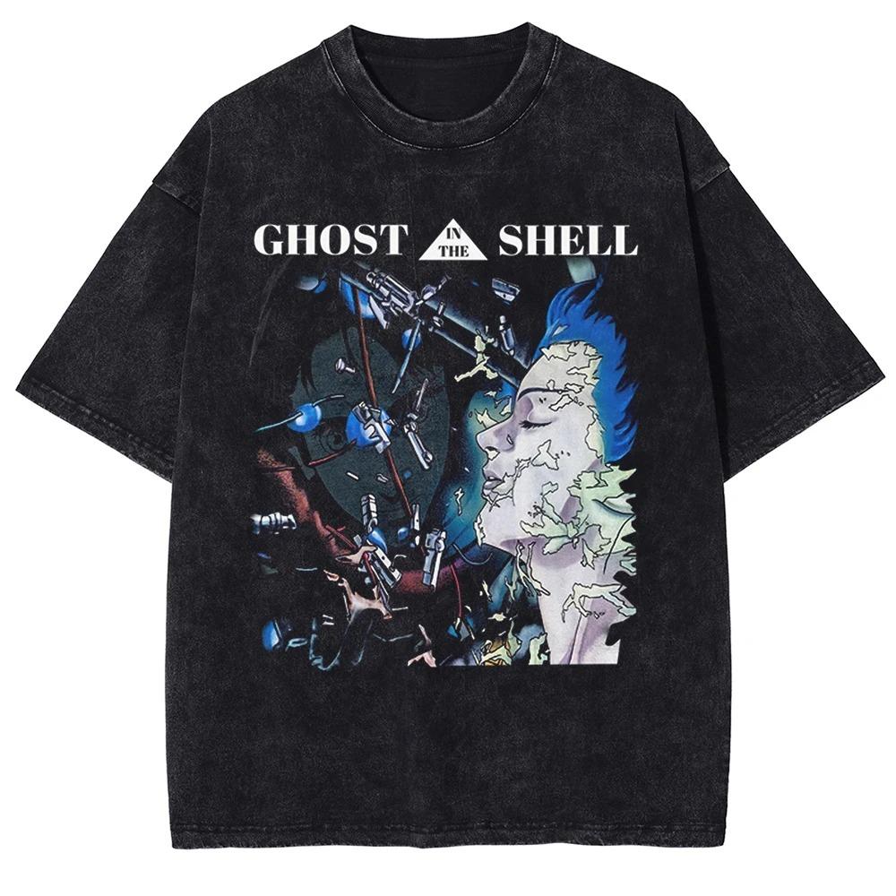 Anime Ghost in the Shell Print T-shirt Cotton Short Sleeve Tee Men Women Clothing Harajuku Vintage Washed Oversized T Shirt