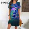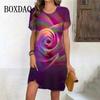 Pink gradient floral print women's dress, party casual mini skirt, Valentine's Day gown, summer new style