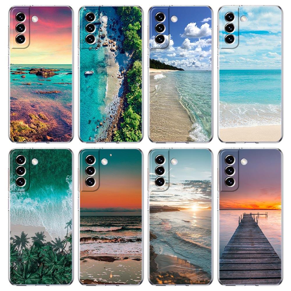 Sea blue Sky beach Clear Silicone Phone Case For Samsung Galaxy S23 S22 5G S20 Ultra S21 FE 5G S10E S9 S8 S10 Plus Soft Cover
