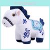 Blue And White Horse Plush Toy With Embroidery For Chinese New Year Gift