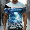 Men's Optical Illusion Ocean 3D T Shirt Short Sleeve T shirt 3D Print Crew Neck Shirt Exaggerated Designer Party Street Casual White Yellow Blue