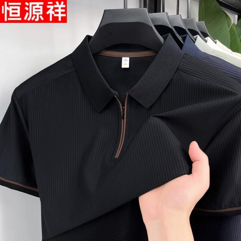 Hengyuanxiang Men's Half-Zip Ice Silk Polo T-Shirt