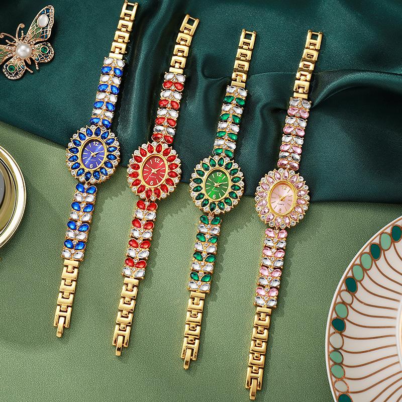 Ladies Watches, Bracelets, Handmade Colored Diamonds, Ethnic Style, Multi-Colored Rhinestones.