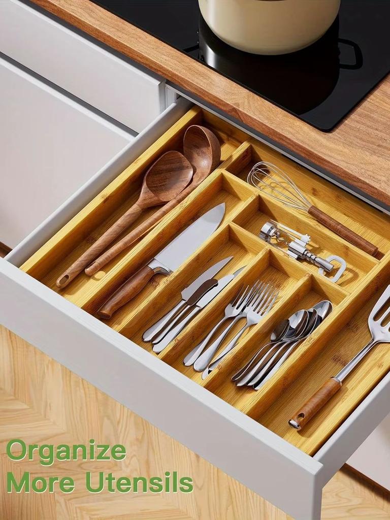Versatile Bamboo Expandable Drawer Organizer for Cutlery, Adjustable Tray, Wooden Drawer Dividers for Organizing Silverware,