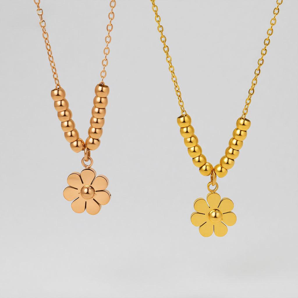 Mori Sweet Chrysanthemum Titanium Steel Necklace Female Flower Beaded Simple Versatile Collarbone Chain Does Not Fade