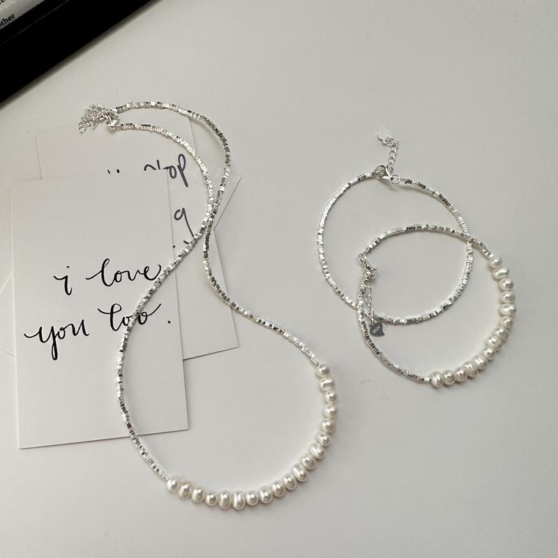 S925 Sterling Silver Fashion Pearl Broken Silver Necklace Korean Style Simple Fashion Collarbone Chain
