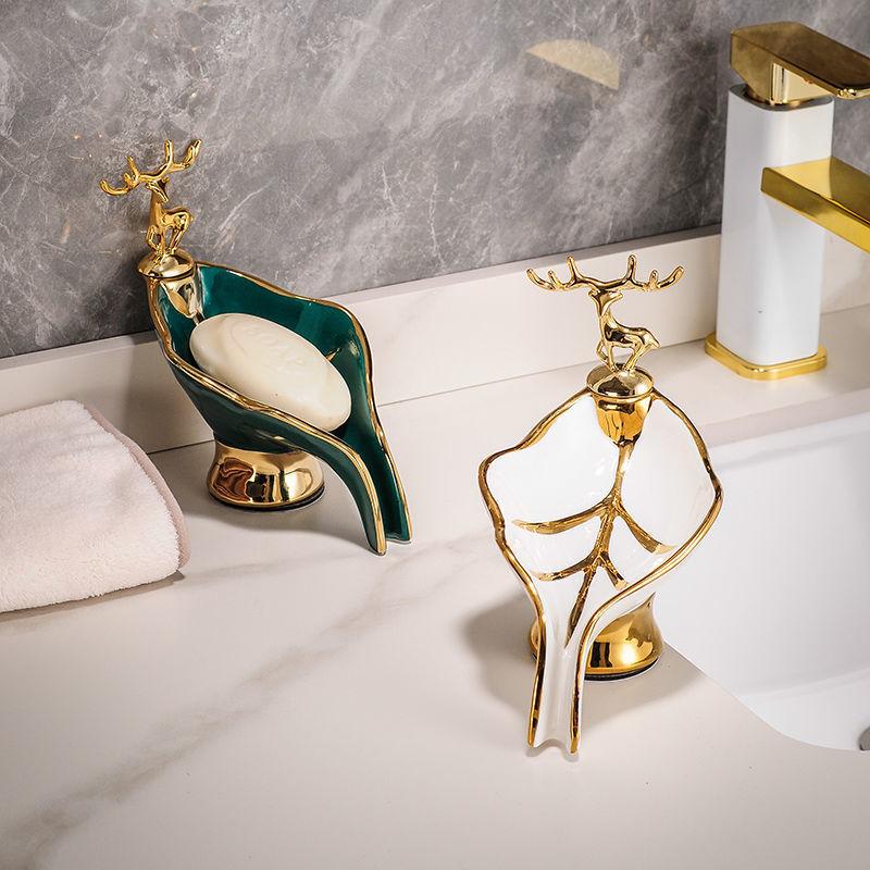 Self-draining Soap Dish Leaf Shaped Soap Box With Deer Decoration Soap Holder For Bathroom Kitchen Home Bathroom Decor
