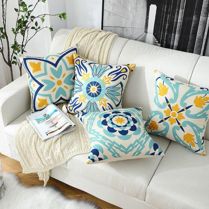 Colorful Floral Patterned Cushions for Sofa Decor Square polyester pillowcase, modern sofa decorative cushion cover