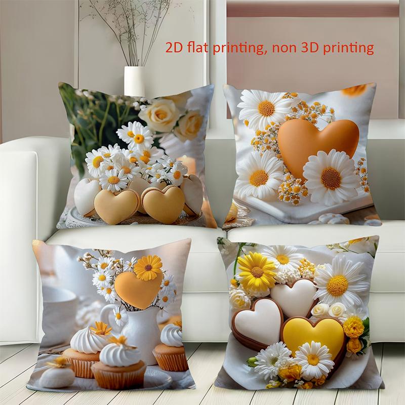 Floral Heart Cushions 2D Printed for Home Decor Polyester pillowcase, sofa decorative cushion cov Headboard Pillow