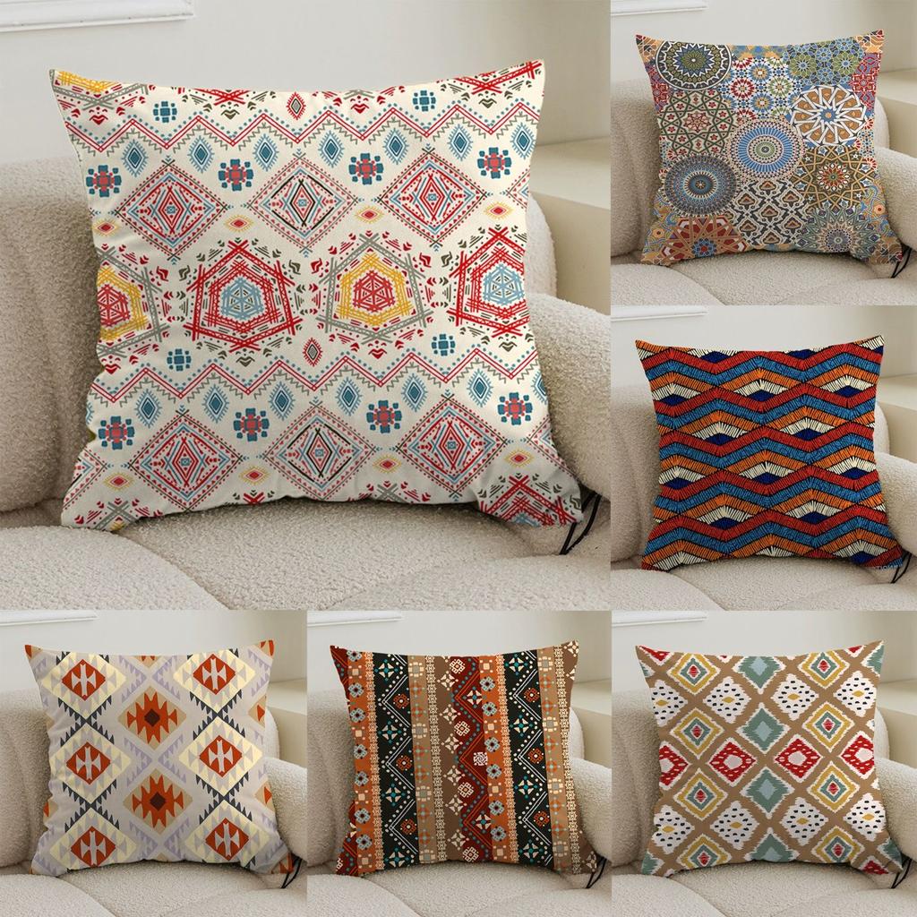 Double-sided bohemian print ethnic pillow cover sofa living room cushion cover geometric pillow square pillowcase
