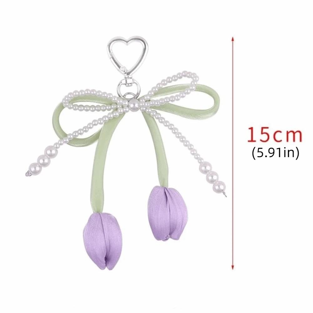 Handmade Tulip Pendant Cartoon Heart Bag Charm Trendy Pearl Tulip Keychain Car Accessory