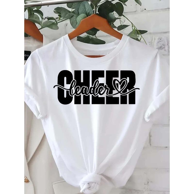 Women's Cheerleader Graphic T-Shirt Cheer Squad Print Crew Neck Short Sleeve Casual Top for Spirit Events