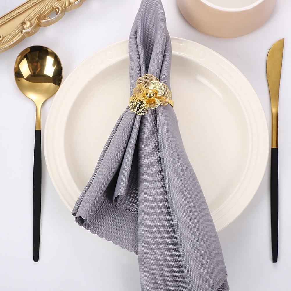 Metal napkin rings with hollow pearl flower design for elegant wedding For Party table decoration set of 6 pieces