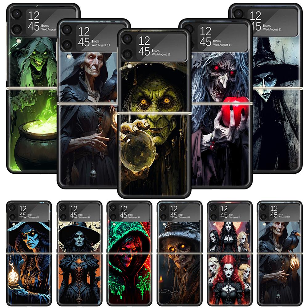 Halloween Moon Witch Horror Phone Case For Samsung Galaxy Z Flip 7 6 5 4 3 5G Shockproof Cover Z Flip7 Flip6 ZFlip5 Flip3 Flip4