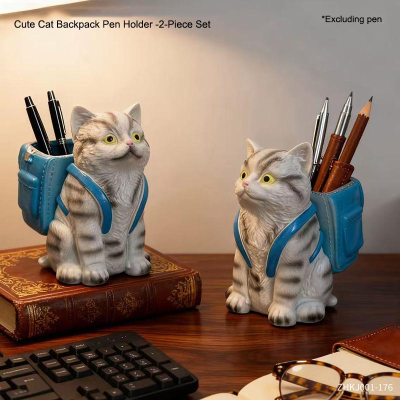 2Pc Cute Cat Backpack Pen Holder Home Storage Ornament Office Desktop Decoration Ornaments Commemorative Gifts