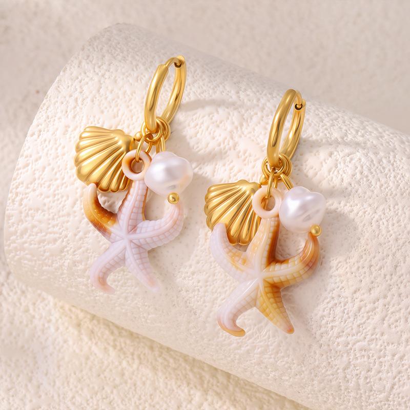 Beach Wind Titanium Steel Earrings for Women - Luxurious High-End Style - Dolphin and Star Pendant Earrings - Ocean Earrings