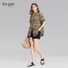Women's Puff Sleeve Stand Collar Printed Shirt