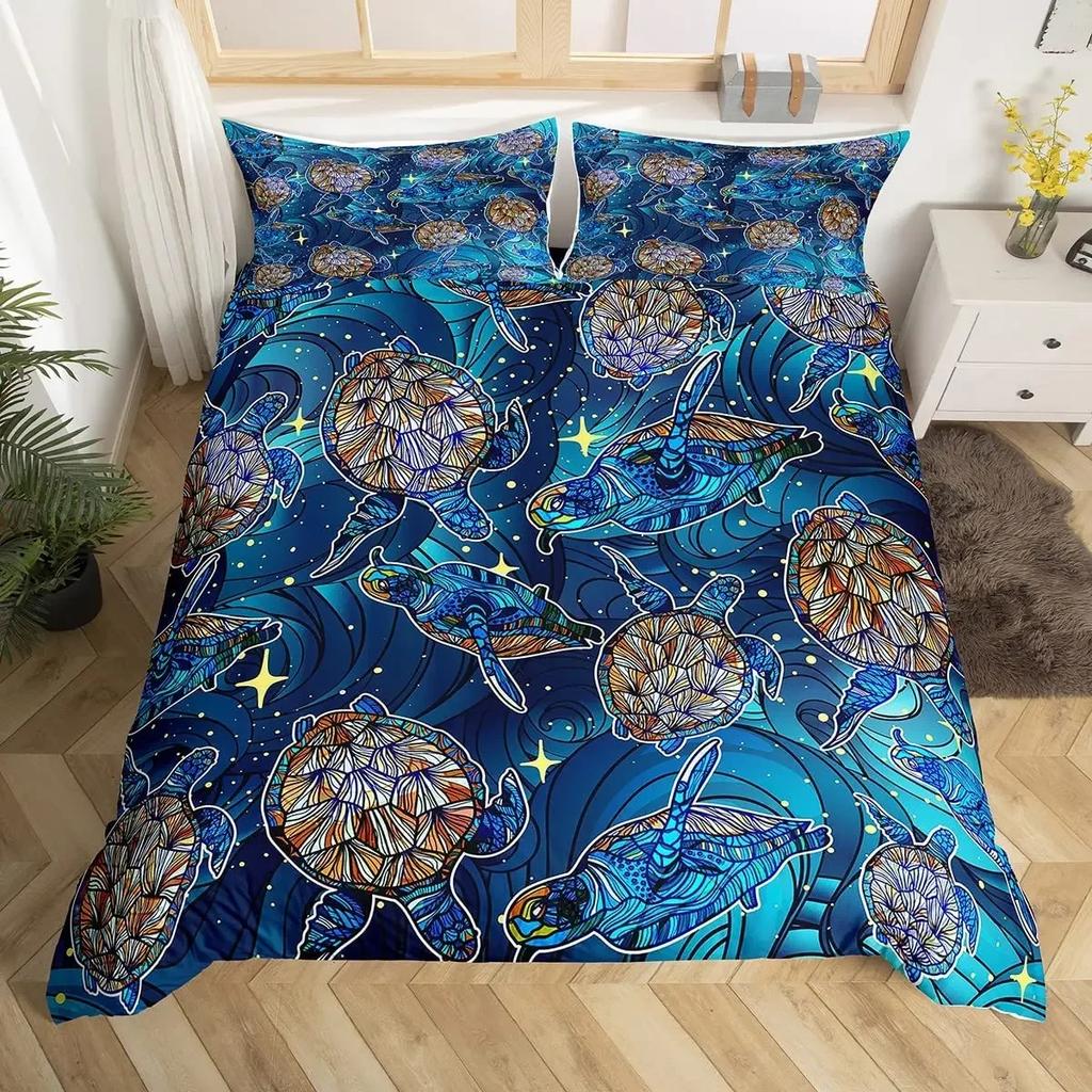 Ocean Theme Sea Turtle Soft Duvet Cover Reptile Tortoise Warm Comforter Cover Microfiber Stary Sky Galaxy Beding Set Single Quen Sized Dimensions