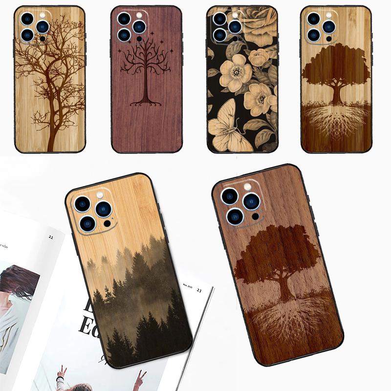Tree Flower Bamboo Wood Case For Xiaomi Redmi Note 13 Pro 14 12 11 10 9 11S 12S Redmi 15 14C 10C 12C 13C 15C Cover