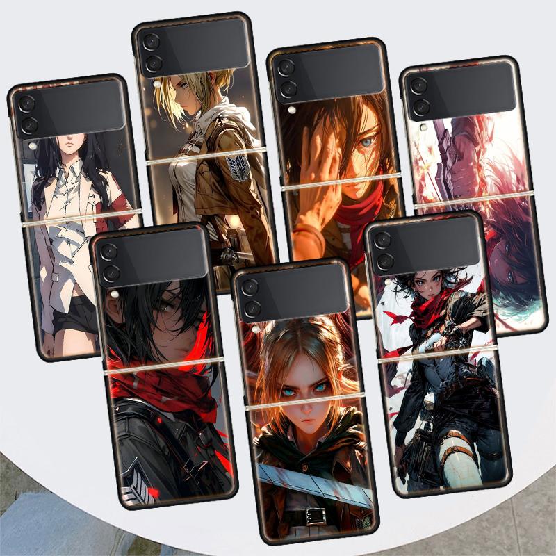 A-Attack on T-Titan Annie Mikasa For Samsung Galaxy Z Flip 7 6 5 4 3 5G Phone Case Black Cover ZFlip 7 6 5 4 3 Shockproof Bumper