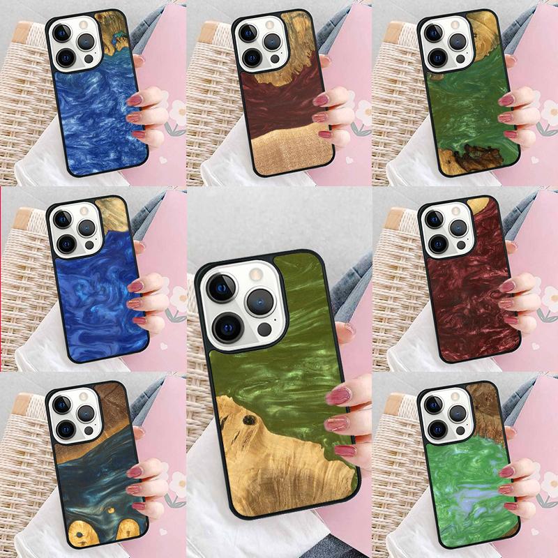 Wood Resin Marble soft Phone Case For iPhone 17 Air 15 16e 14 13 Pro Max Coque 12 11 Pro Max PLUS cover