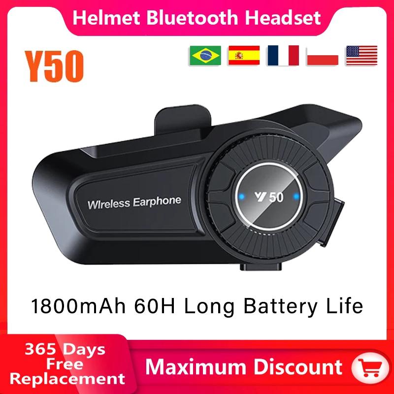 Y50 Motorcycle Helmet Bluetooth Headset 1800mAh 60H Long Battery Life IPX6 Waterproof Anti-Freezing Music Player Earphone
