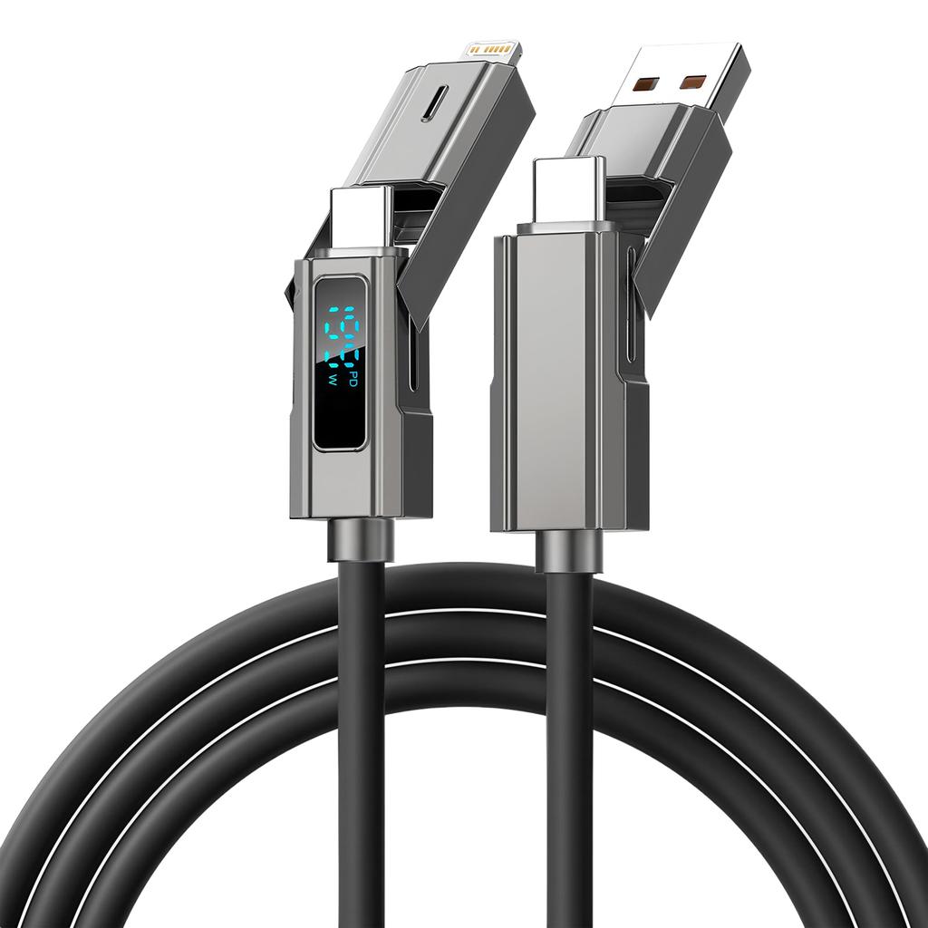 Digital Display 4 In 1 PD USB Type C Data Cable Fast Charging For iPhone 15 Samsung Xiaomi Redmi OPPO Cable Fast Charger