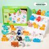This wooden puzzle toy features three-dimensional animal, transportation, and alphabet designs that promote early learning. Made of durable wood, encouraging cognitive development through tactile engagement. Ideal for classroom or home use, it supports recognition of animals, vehicles, and letters. Wipe clean with a damp cloth to maintain its quality.