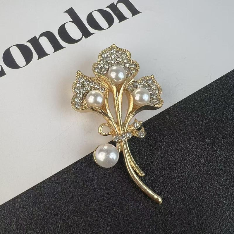 Light Luxury Plant Flower Rhinestone Pearl Brooch For Women Clothing Coat Accessories Gifts