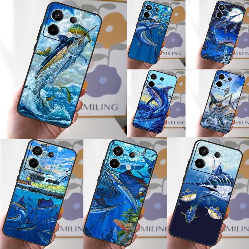 Blue Marlin Painting Case For Xiaomi Redmi Note 13 Pro 12 11 10 9 Note 12S 10S 11S 9S Redmi 12 10C 12C 13C Cover
