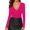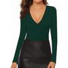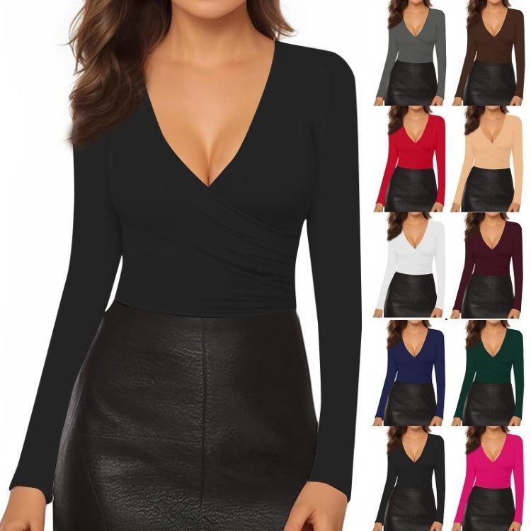 Women's And Winter Fashion Slim V-Neck Solid Color Long Sleeve Bottom Down Shirt Sweatshirt Top