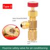 1 kus R410A R22 Klimatizační chladivo 1/4" Bezpečnostní adaptér Kapalinový bezpečnostní ventil Oprava klimatizace a Fluorid
