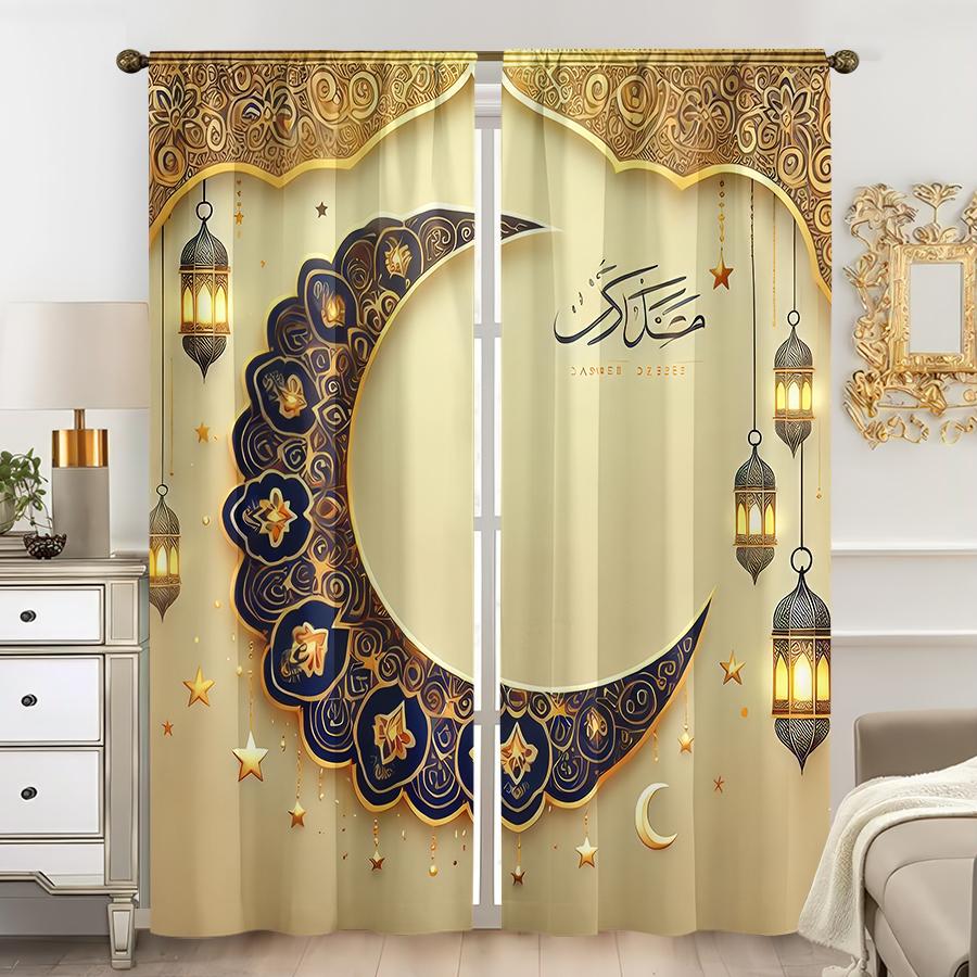 2PCS Eid al Fitr themed Islamic curtains, luxurious style, bedroom living room, decoration, drawbar pocket decoration