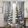2pcs Elegant Golden Christmas Tree & Gift Pattern Curtains, Designed for Light Blocking, Premium Material, Suitable for Christma