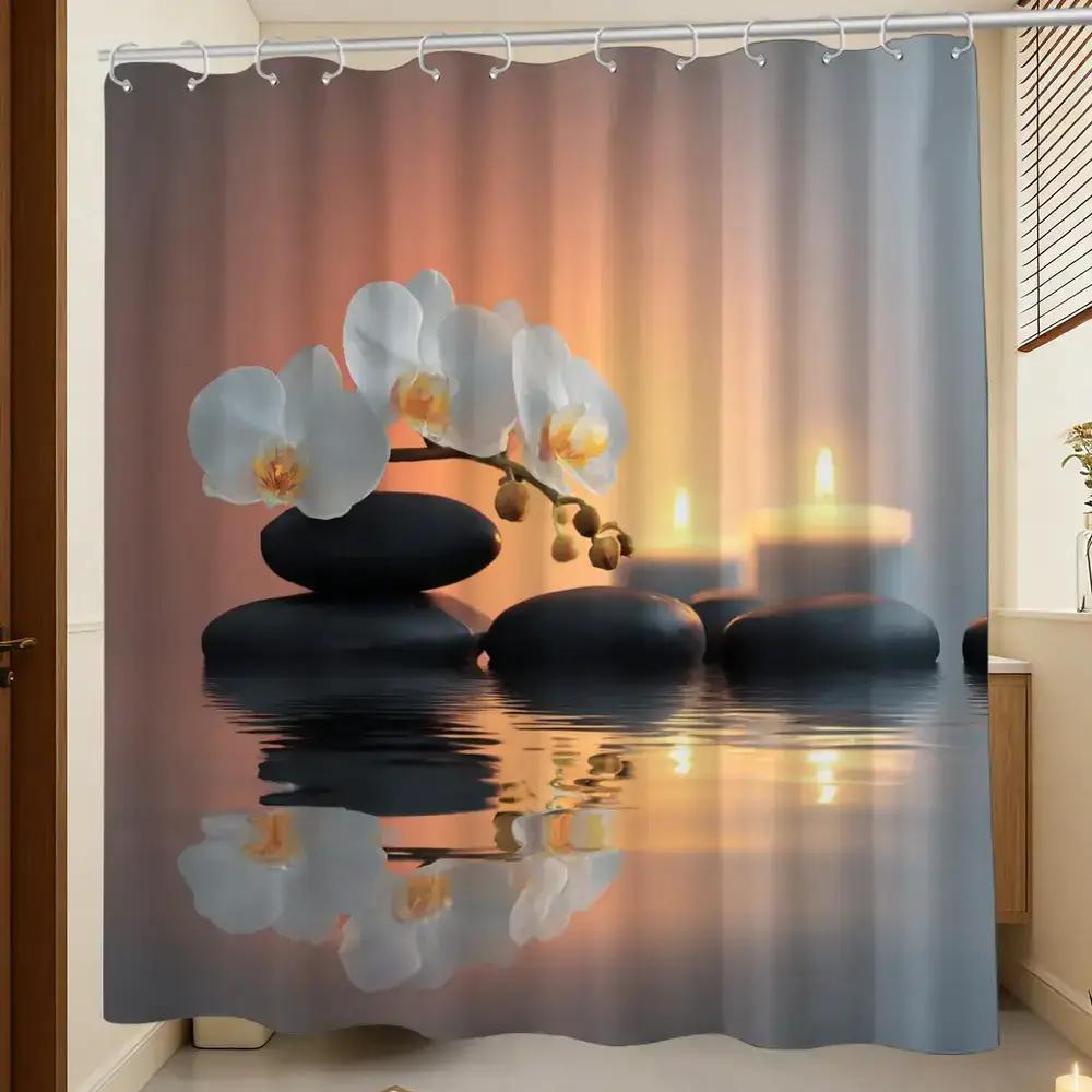 1ks Koupelnová sprchová závěs, Workshop léčení duše, Sprchový závěs pro večer při svíčkách, Včetně 12 háčků, 180*180cm Koupelna