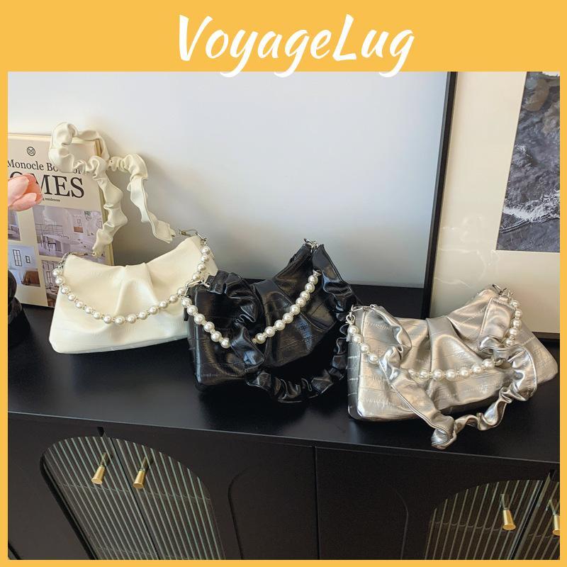 Chic French Cloud Underarm Bag For Women Stylish Pleated Handbag With Pearl Accents